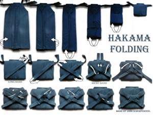 Beau et pratique, de coupe ample, il permet une liberté totale des mouvements, masque les déplacements dont il embellit la fluidité et la rondeur. Les couleurs les plus utilisées sont le noir, le bleu et le blanc. II comporte un grand pli à l'arrière, 5 sur le devant et un petit dossier rigide (Koshi-ita) qui aide à garder le dos droit. ( Il existe des hakamas comme le nobakama ayant un nombre de plis différent )Le Hakama est normalement exigé pour la pratique des Arts Martiaux faisant partie de la tradition classique. II est donc le symbole de leur noble héridité.