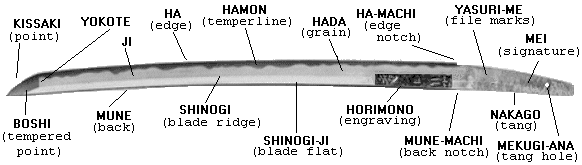 Entre les deux parties de la lame, apparaît, bien visible, la ligne de trempe. Sur la partie la plus trempée, le choc thermique transforme l'acier en une structure appelée martensite. Il s'agit de fins cristaux extrêmement durs qui expliquent le redoutable tranchant des Nippon-tô. Suivant le résultat que le forgeron veut obtenir, il peut retoucher légèrement la courbure. Puis la lame est grossièrement polie, pour lui donner sa forme définitive.