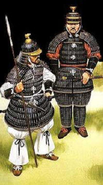 Période troublée de l'histoire du Japon, l'ère Muromachi démarre par la domination de nouveaux Shogun, les Ashikaga. La fonction impériale s'est effondrée dans ses guerres de succession sans fin, et s'est appauvrie, laissant les Bushis seuls maîtres du pays. Durant un siècle l'autorité du Shogun sur les fonctionnaires militaires ( Jitô et Shugo ) est effective. Mais dés 1467, les choses changent rapidement. La succession des Ashikaga jette le pays dans une période d'un siècle de guerres incessantes. Le Shogunat contrôle de moins en moins la situation, et ce sont les fonctionnaires militaires qui prennent leur autonomie sous le titre de Daimyos. Ces derniers accroissent rapidement leur domaine en confisquant les terres des autres guerriers, qui sont obligés alors de se mettre à leur service. En l'espace de 50 ans, c'est toute l'organisation militaire des Bushis qui est modifiée, sous l'autorité de grands seigneurs, issus eux-même des rangs des guerriers. De plus, les Daimyos, pour accroître leur force, n'hésitent pas à enrôler des paysans dans les armées. Ceux-ci vont devenir les Ashigarus, infanterie nombreuse des futurs champs de batailles. Les Bushis deviennent donc naturellement des officiers encadrant les troupes d'un seigneur. Ainsi se prépare les grandes batailles à venir de l'unification du Japon.