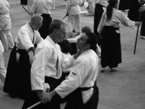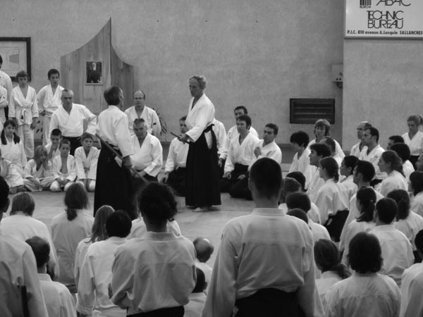 Chaque pays possède sa propre culture mais tous les élèves essaient de pratiquer l’Aïkido qui est une seule et même voie où que l’on aille. De mon côté j’essaie de présenter les choses sous le jour le plus compréhensible à chacun. Il n’y a pas tant de différences. J’essaie simplement de répondre aux questions que se posent les pratiquants et de voir les points qui doivent être corrigés. Selon l’endroit ces points varient mais l’essence de l’Aïkido reste la même. Bien sûr il est parfois nécessaire d’expliquer certains détails culturels. Par exemple dans les pays musulmans certains élèves rechignent à faire le salut en seïza. Je leur explique alors qu’il ne s’agit au Japon que d’une forme de salutation, un signe de respect et de gratitude.