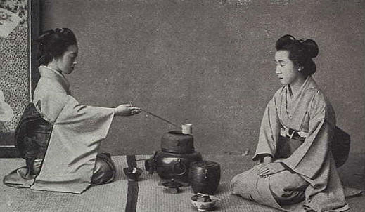 Pendant l'ère Edo (1603-1868), les bourgeois de la cour shôgunale apportèrent de nouveaux raffinements à la cérémonie du thé, aussi appelée cha no yû... Cependant, pendant l'ère Meiji (1868-1912), le Japon s'ouvrant aux influences occidentales, l'art du thé fut délaissé par les élites nationales pour n'être plus pratiqué que par des femmes.